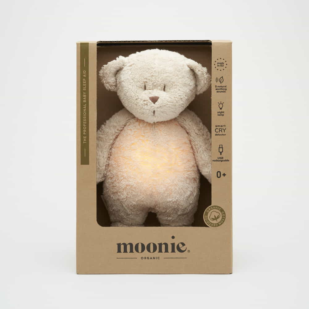 A bájos maci formájú, éjszakai fénnyel és nyugtató hangokkal ellátott Moonie altatódal segít a babának megnyugodni és könnyebben elaludni. A nyugtató hangok emlékeztetik a babát a mama méhében lévő környezetre, mielőtt megszületett. A maci öt természetes relaxáló hangot (anyaméh, szél, erdei patak, tengeri hullámok, eső) és egy kifejezetten újszülöttek számára komponált altatódalt kínál.