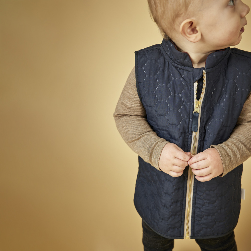 A NUUROO termo gyerek mellény szinte maga a kényelem és stílus: kis zsebekkel és cipzárral ellátva, tökéletes választás a szabadtéri játékhoz. Sötét kék színe eleganciát kölcsönöz, míg az újrahasznosított poliészter anyaga gondoskodik a környezetbarát megoldásról. Pulóverrel vagy esőkabáttal kombinálva ideális viselet a hideg időben. Az OEKOTEX® 100-1 szabvány szerinti tanúsítványa pedig garantálja, hogy a minőség nem került feláldozásra a fenntarthatóság oltárán. Hadd legyen a gyermekednek is része a környezettudatos divatnak!
