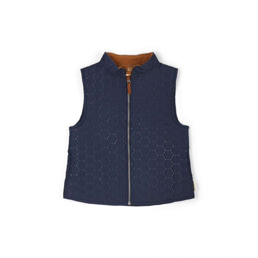 A NUUROO termo gyerek mellény szinte maga a kényelem és stílus: kis zsebekkel és cipzárral ellátva, tökéletes választás a szabadtéri játékhoz. Sötét kék színe eleganciát kölcsönöz, míg az újrahasznosított poliészter anyaga gondoskodik a környezetbarát megoldásról. Pulóverrel vagy esőkabáttal kombinálva ideális viselet a hideg időben. Az OEKOTEX® 100-1 szabvány szerinti tanúsítványa pedig garantálja, hogy a minőség nem került feláldozásra a fenntarthatóság oltárán. Hadd legyen a gyermekednek is része a környezettudatos divatnak!