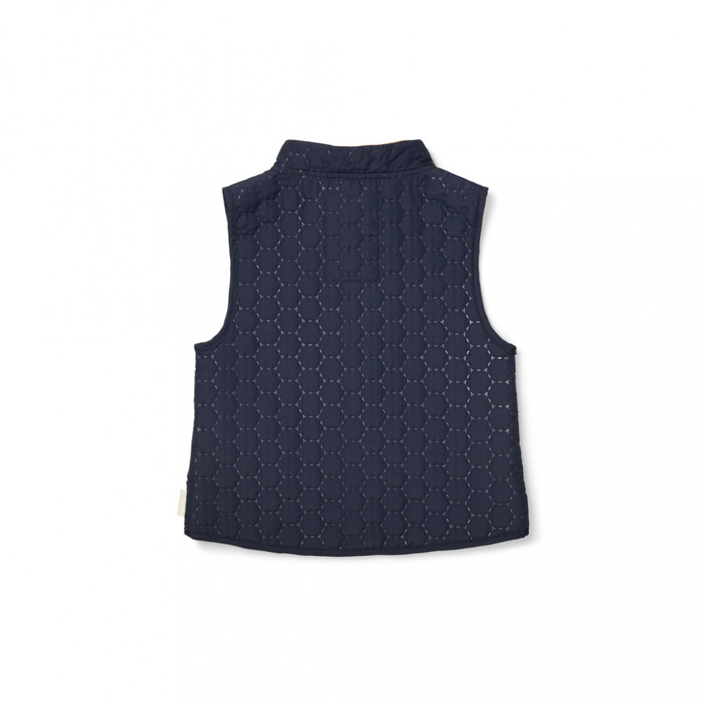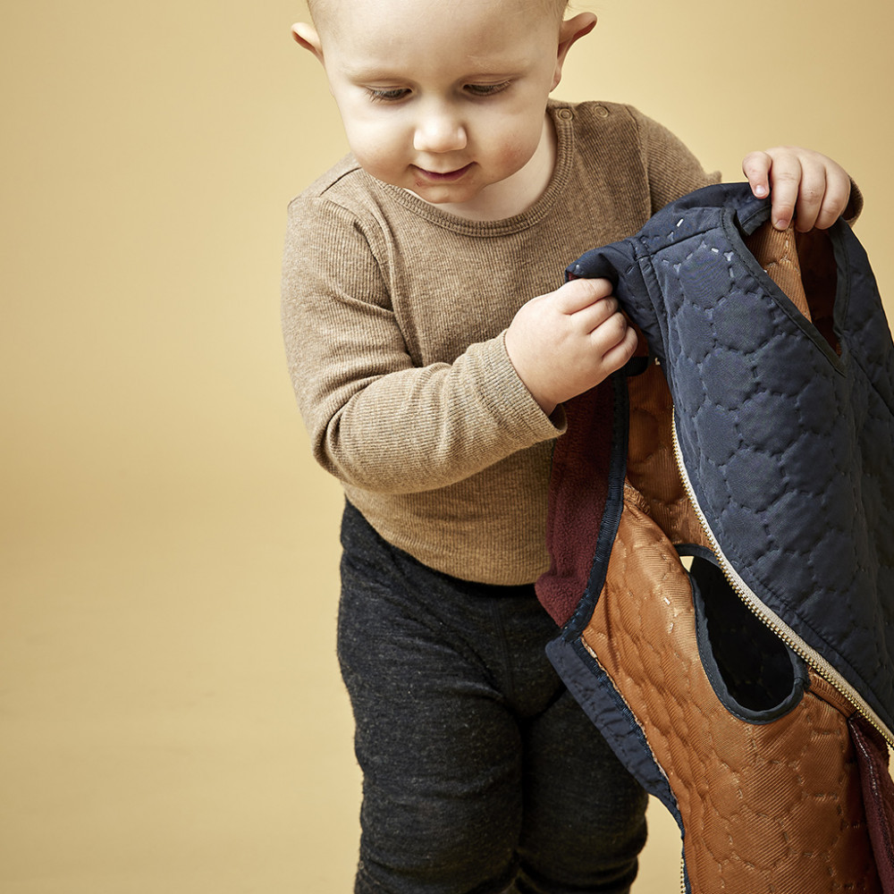 A NUUROO termo gyerek mellény szinte maga a kényelem és stílus: kis zsebekkel és cipzárral ellátva, tökéletes választás a szabadtéri játékhoz. Sötét kék színe eleganciát kölcsönöz, míg az újrahasznosított poliészter anyaga gondoskodik a környezetbarát megoldásról. Pulóverrel vagy esőkabáttal kombinálva ideális viselet a hideg időben. Az OEKOTEX® 100-1 szabvány szerinti tanúsítványa pedig garantálja, hogy a minőség nem került feláldozásra a fenntarthatóság oltárán. Hadd legyen a gyermekednek is része a környezettudatos divatnak!