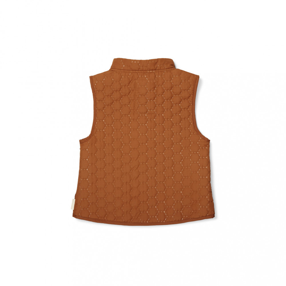 Bájos karamell színben pompázó NUUROO termo gyerek mellény, mely az újrahasznosított poliészter anyagának köszönhetően környezetbarát választás. A kényelmes és praktikus kialakítású mellényt zsebek és cipzár teszi még hasznosabbá. Ideális választás a szabadtéri játékhoz, pulóver alá vagy esőkabát felett hordva. Minőségét az OEKOTEX® tanúsítvány bizonyítja, amely a 100-1 szabvány szerinti ellenőrzésen esett át. Kiváló minőségű, kényelmes és stílusos választás a hidegebb napokra!