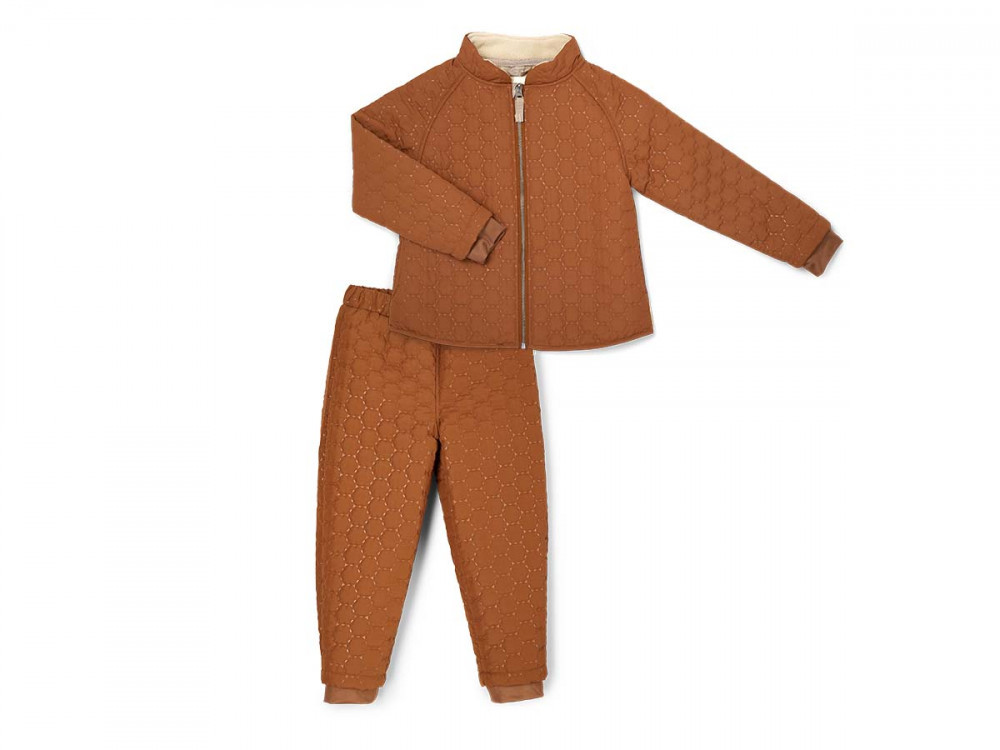 A Nuuroo thermo gyerek szett kényelmes és praktikus választás a hidegebb napokra. 100%-ban újrahasznosított poliészterből készült, így nem csak kicsinyeinket védjük a szél és az eső ellen, de a környezetet is óvjuk. A szett karamell színben pompázik, ami tökéletesen illik az őszi-téli időszakhoz. A minőséget az OEKOTEX® tanúsítvány is garantálja, így biztosak lehetünk benne, hogy csak a legjobbat adja gyermekünknek. Ideális választás esőruházat alá, de önmagában is tökéletes viselet a hűvösebb napokon. Kényeztesse gyermekét ezzel a kiváló minőségű, újrahasznosított poliészter thermo szettel.