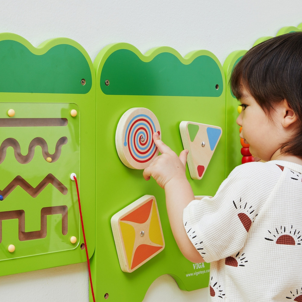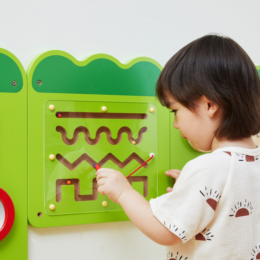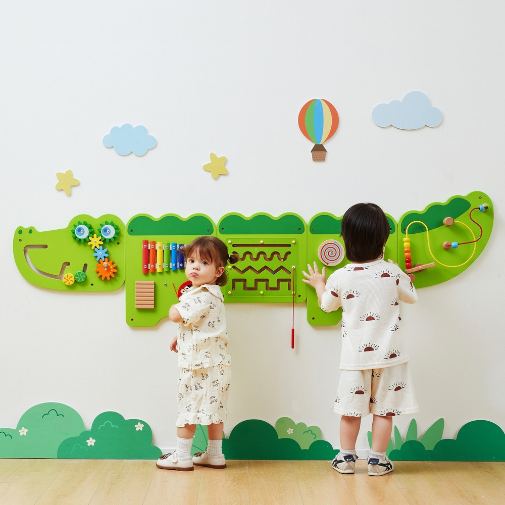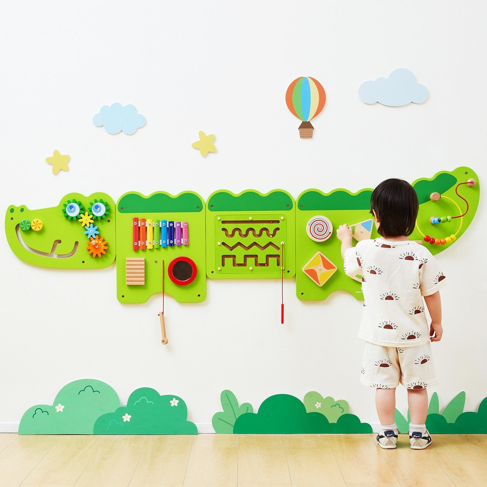 Ha olyan megoldást keresel, ami egyszerre díszíti a falat és valódi készségfejlesztő értéket ad, ez a krokodilos matatófal ideális választás.