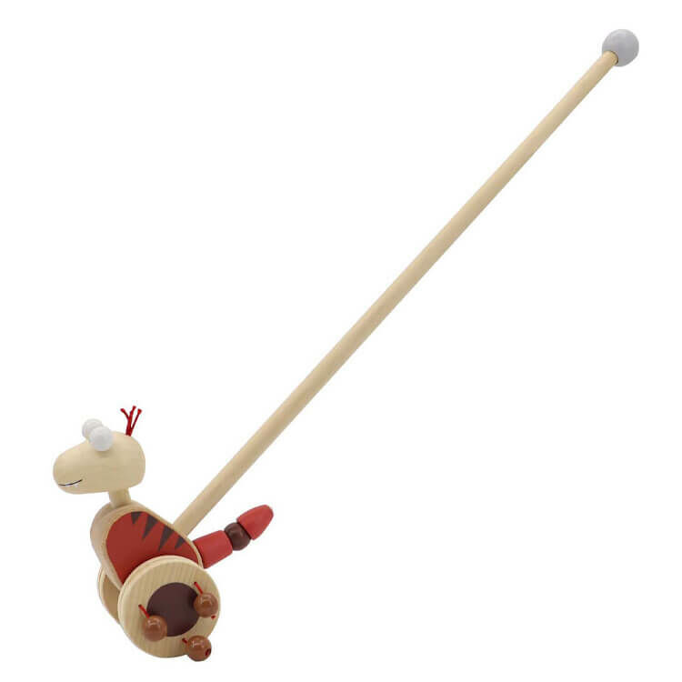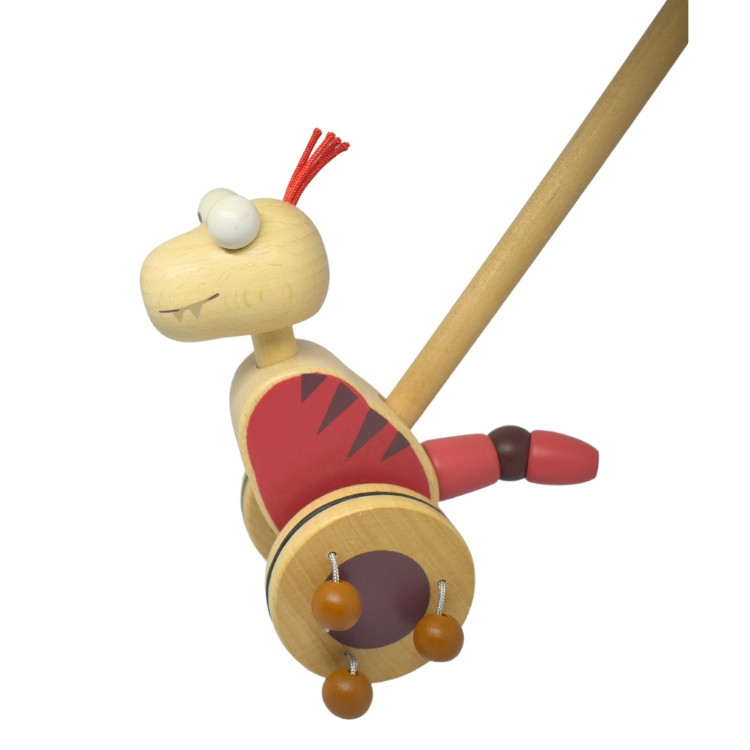 A piros színű tologatós dínó formájú játék nemcsak funkcionális, hanem vizuálisan is vonzó. Az élénk színek és a barátságos dínó forma azonnal felkeltik a gyerekek érdeklődését és garantálják, hogy a játék hamar kedvenccé válik. A színes kialakítás segít stimulálni a gyerekek vizuális érzékelését és hozzájárul az esztétikai ízlésük fejlődéséhez.