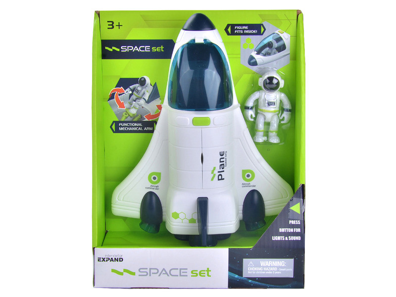 Nyisd fel a pilótafülke ajtaját, ültesd be a kapitányt és indítsd be a rakétákat. A pilótafülke mögötti gomb megnyomásával fényeket és hangokat is kiad az űrhajó, próbáld ki mindegyiket, miközben a Marsra vagy a Jupiterre repültök fénysebességgel! Ez a szuper műanyag űrhajó játék csodálatos kalandokat rejteget, melynek csak a fantázia szab határt.